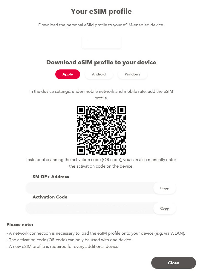 Activate Esim Digital Voucher With Qr Code Sunrise Help